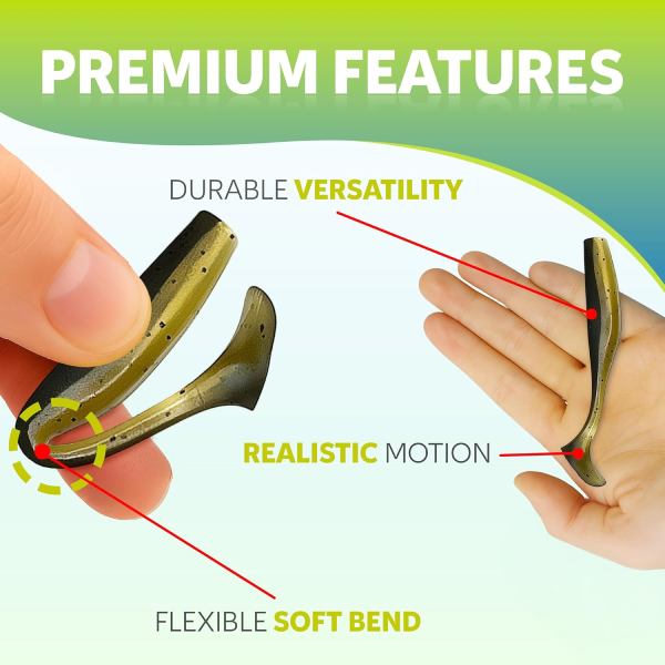 • Durable Soft Plastics: Premium material resists tearing and lasts longer, even after multiple catches.